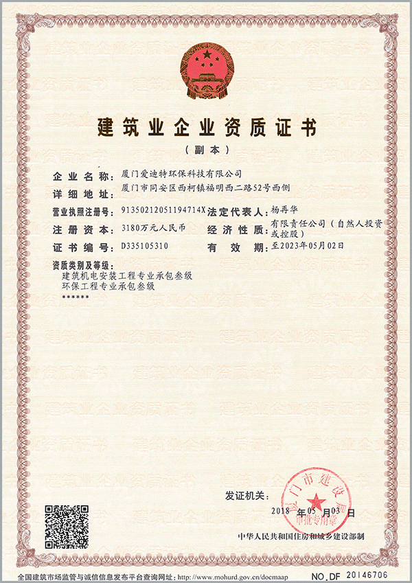 建筑機(jī)電安裝工程專業(yè)承包叁級,環(huán)保工程專業(yè)承包叁級